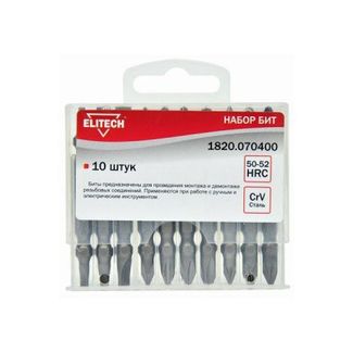 Набор бит двусторонних ELITECH 1820.070400, 10 штук, CrV, пластиковый бокс, SL-SL(4,5,6), PH-PH(1,2,3),PZ-PZ(1,2).