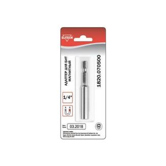 Адаптер магнитный для бит ELITECH 1820.070500, 1/4 дюйма в блистере, используется с дрелями-шуруповертами для работы различными битами.