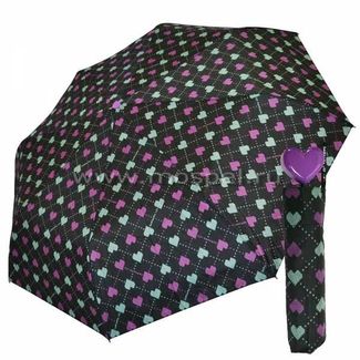 Женский зонтик в 3 сложения с рисунком "Heart" фиолетовое сердце.Материал купола-эпонж.Зонт открывается и закрывается в ручную.Каркас зонта сделан из анадированной стали и углеволокна нового поколения.Красивая ручка в виде сердечка. Дизайнерский зонт - отличный подарок девущке! Все зонты итальянского бренда H.DUE.O оснащены системой антиветер, которая выворачивает и возвращает спицы в исходное положение при сильном ветре. None Возможен самовывоз. Есть доставка.