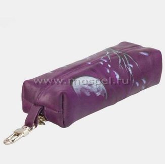 Классическая женская ключница из натуральной кожи «Сова» фиолетовая: застежка мония кольцо для ключей снаружи карабинчик Ключница фиолетовая «Сова» из коллекции Premium бренда Alexander TS - настоящее произведение искусства. Картинка на ключнице создана художником при помощи специальной техники выжигания по коже и росписи красками. Каждый рисунок наносится на кожу вручную, что обеспечивает его неповторимость. В нашем магазине можно купить как готовый аксессуар, так и заказать... None Возможен самовывоз.