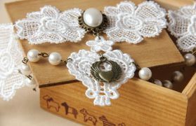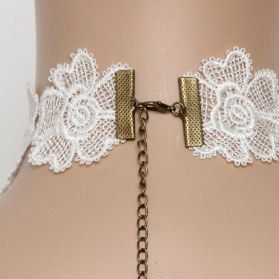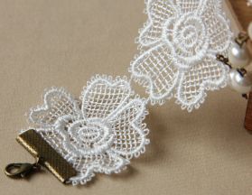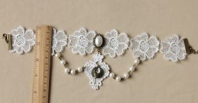 Очаровательное колье на белой кружевной основе. Украшено жемчугом и цепочками. В наличии 2 шт None Есть доставка.