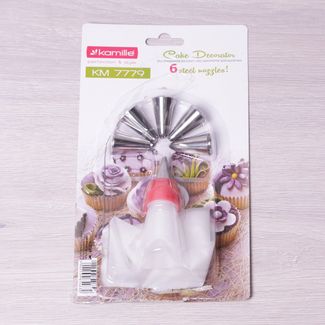 Кондитерский мешок Kamille с переходником и 6 стальными насадками