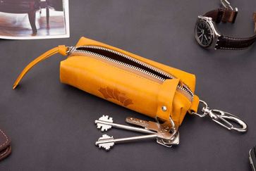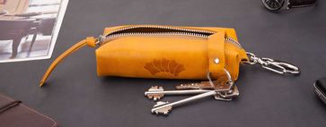 Кожаная ключница Барселона желтая