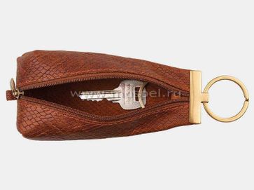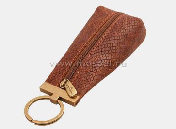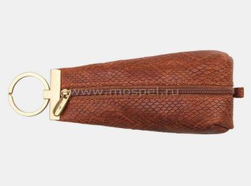 Ключница из натуральной кожи, тисненной под змею K-103 рыжая: застежка молния кольцо для ключей внутри кольцо для ключей снаружи Ключница K-103 рыжая из коллекции Premium бренда Alexander TS None Возможен самовывоз.