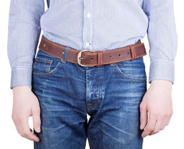 Кожаный мужской ремень "Анри" коричневый Аксессуар бренда Кожинка выполнен из надежной и прочной, славящейся своими качествами шорно-седельной кожи. Имеет классическую пряжку на 1 отверстие. Идеальный вариант для джинсов. None Возможен самовывоз.