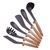 Набор кухонных принадлежностей с подставкой 7 предметов нейлоновые с ручкой под дерево