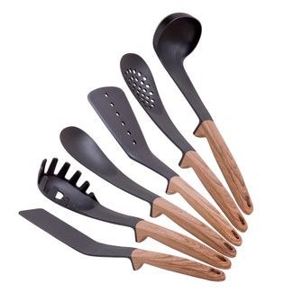 - Набор кухонных принадлежностей с подставкой 7 предметов нейлоновые с ручкой под дерево по выгодной цене 1 170 р. руб.;