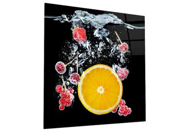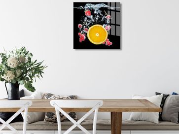 Картина Водный фрукт дополнит интерьер кухни яркими сочными красками. Реалистичное изображение дольки апельсина создаст солнечное настроение даже в самую пасмурную погоду. Идеально гладкая поверхность закаленного стекла отлично переносит влагу и легко очищается от загрязнений.<br>