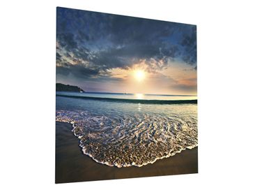 Картина Закат на тропическом пляже поможет создать в интерьере умиротворяющую атмосферу летнего вечера. Пейзаж будет отлично смотреться в спальне, гостиной или на кухне и не потребует особого ухода. Нанесенное на стекло изображение не боится влаги и без усилий очищается.<br>