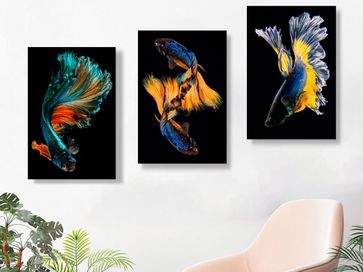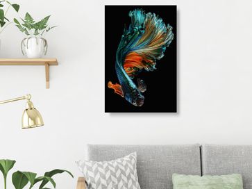 Картина Бойцовая рыбка — эффектное дополнение интерьера, которое придаст помещению неповторимый облик. Изображение долгое время сохраняет яркость и насыщенность цветов, при этом легко очищается от пыли с помощью влажной ткани.<br>