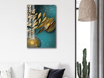 Картина Голд фиш — простой способ украсить пустую стену и сделать обстановку завершенной. Оттенки солнца и морской воды сближают с природой и действуют успокаивающе, делая интерьер более уютным и гармоничным. Благодаря качественной фотопечати, нанесенной на закаленное стекло, изображение долго остается ярким и насыщенным.<br>