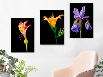 Картина Ирис отлично подходит для декорирования стен в любом помещении. Реалистичное изображение на темном фоне притягивает взгляд и добавляет комнате индивидуальности.<br>