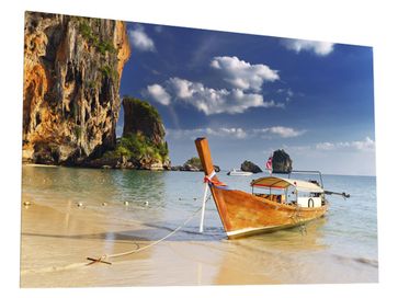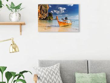 Картина Лодка поможет поддерживать отпускное настроение в любое время года. Реалистичный морской пейзаж будет отлично смотреться в любом помещении, а закаленное стекло защитит от влаги и позаботится о сохранении цвета.<br>