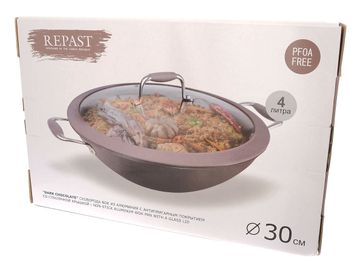 - ПМ: Грандлюкс 46449 Сковорода вок со стеклянной крышкой Repast Dark chocolate диаметр 30 см, высота 9 см, 4 л по выгодной цене 7 090 р. руб.;