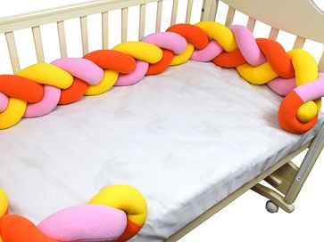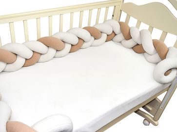 Бортик-коса Карамель выполнен из мягкого и приятного на ощупь флиса, который безопасен для новорожденных и не вызывает аллергии. Удобное приспособление защитит малыша от сквозняков и не позволит ребенку удариться или застрять в перекладинах. Модель можно использовать как в прямоугольных, так и в овальных кроватках.<br>