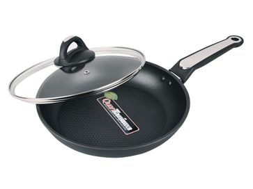 Сковорода QuanTanium 26 см выполнена из литого алюминия и дополнена внутренним антипригарным покрытием с частицами титана, что обеспечивает устойчивость к царапинам, быстрый и равномерный нагрев, а также возможность готовить здоровую пищу без добавления масла. Крышка из термостойкого стекла с пароотводом препятствует испарению жидкости и позволяет наблюдать за приготовлением блюда.<br>