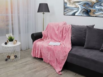 Плед Розы на розовом украсит обстановку спальни или гостиной. Модель позволит уютно устроиться на кровати, диване либо в кресле за чтением, просмотром телевизора или во время безмятежного отдыха.<br>