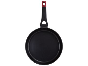 Сковорода Smart Cooking 28 см произведена из литого алюминия. Высокая теплоемкость материала позволяет значительно сократить потребление электроэнергии при готовке.<br> Гладкая поверхность сковороды имеет антипригарное покрытие, это позволит готовить блюда с минимальным добавлением масла. Прочная ручка из бакелита не нагревается, а также имеет удобное отверстие для вертикального хранения на крючке.<br> Характеристики: <br> Материал: алюминий, антипригарное покрытие.<br> Цвет ручки: черный, красный.<br> Материал ручки: бакелит.<br> Толщина стенок: 5 мм.<br> Высота стенок: 5 см. None Страна производства: Китай