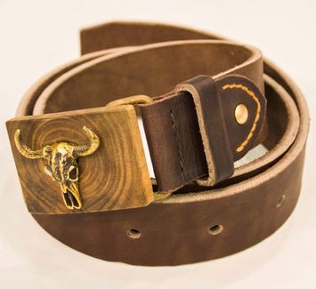 Ремень ручной работы из кожи буйвола с пряжкой "Буйвол". Материал ремня: кожа буйвола Литье: бронза - череп буйвола Ширина 5 см Длина 140 см Пряжка: латунь, орех Ремень прошит в ручную. Финишная шлифовка пряжки проведена так же вручную и в завершение обработана льняным маслом. В результате, пряжка выглядит абсолютно гладкой, без царапин, как случается при массовом производстве. Обработка натуральным маслом позволяет сохранить пряжке первоначальный внешний вид весь срок... None Возможен самовывоз.