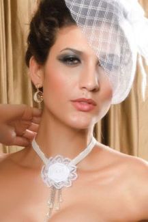 Украшение на шею в виде цветка белого цвета. Окантовка из кружев. Декорировано бусинками. В наличии 2 шт None Есть доставка.