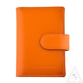 Женская визитница Giorgio Ferretti 00023-TP-4A на кнопке, изготовлена из натуральной кожи с приятной фактурой. Стильная и современная модель. Цвет - оранжевый. Отлично подходит для хранения банковских карт и визиток. Вместительность - 40 карточек(20 файлов). None Возможен самовывоз.