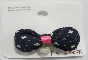 Оригинальный зажим-заколка для собаки в виде бантика с белой жемчужиной.