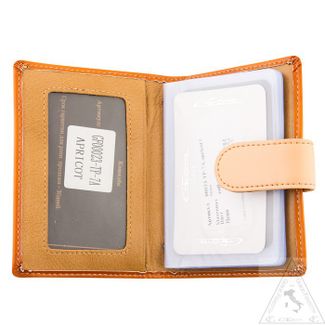 Женская визитница Giorgio Ferretti 00023-TP-7A на кнопке, изготовлена из натуральной кожи с великолепным тиснением и приятной фактурой. Стильная и современная модель. Цвет - оранжевый. Отлично подходит для хранения банковских карт и визиток. Вместительность - 40 карточек(20 файлов). None Возможен самовывоз.