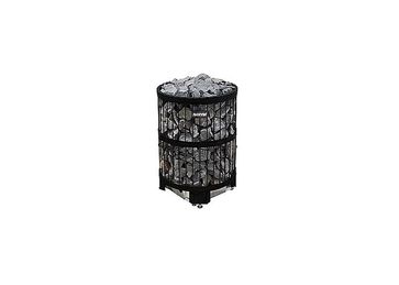 Стильный простовато-грубый стальной каркас вмещает 120 кг камней, и когла они нагреты, то можно великолепно попариться даже в большой сауне. Благодаря открытой конструкции пространства для камней воду можно плескать прямо на всю внешнюю поверхность каменки. Жар, который скапливается в большом количестве камней, позволяет плескать больше воды даже при низкой температуре; это позволит пережить восхитительные ощущения от влажного парения. Печь источает тепло в течение длительного времени после выключения.