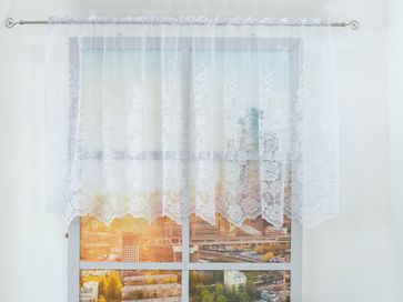 Тюль Альмето — прекрасное решение для создания уютного интерьера на кухне, в столовой или любой другой комнате. Короткая занавеска из полупрозрачной ткани придает оконному проему завершенный вид, при этом оставляет подоконник открытым.<br>