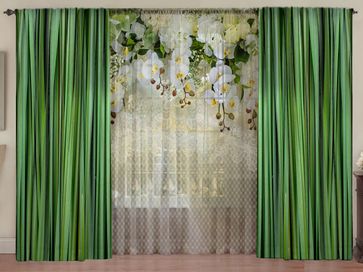 Комплект штор с тюлем Изумрудный ажур станет украшением спальни или гостиной. Яркий цветочный рисунок привнесет разнообразие в интерьер и сделает внешний вид комнаты неповторимым. Набор поможет создать комфортную обстановку для отдыха и повседневной жизни.<br>