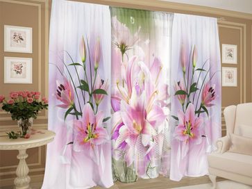 Комплект штор с тюлем Веточка нежности в поэзии привнесет в обстановку свежую весеннюю нотку и станет главным украшением любого интерьера. Набор отлично блокирует яркое солнце, в меру приглушает свет для комфортного отдыха и дарит комнате уютный вид.<br>