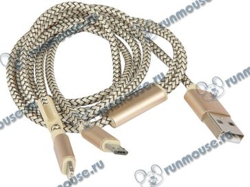 Кабель Robiton "P10 Multicord" 879-590 для зарядки, универсальный, USB A->microB+Lightning, золотистый (1.0м) (ret) [141857]