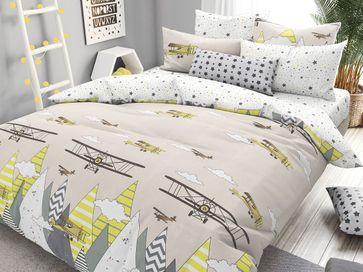 Комплект постельного белья Самолеты — отличное решение для оформления детской комнаты. Нежные оттенки настраивают на спокойный отдых, а мягкая натуральная ткань дарит приятные ощущения и поддерживает комфортный микроклимат спального места.<br>