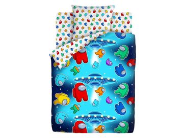 Детский комплект постельного белья Амонг Ас с красочным принтом на тему популярной видеоигры и светящимися элементами на пододеяльнике подарит малышу хорошее настроение и крепкий здоровый сон. Набор выполнен из практичного натурального материала, который безопасен для здоровья ребенка, отличается гигроскопичностью и долговечностью.<br>