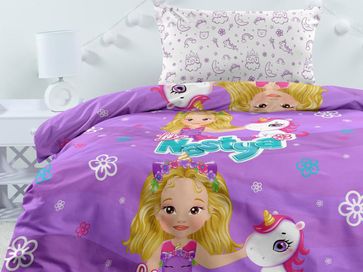 Детский комплект постельного белья Настя и единороги с красочным принтом на тему популярного детского видеоблога подарит ребенку хорошее настроение и крепкий здоровый сон. Набор выполнен из экологичного и гипоаллергенного материала, который отличается высокой степенью комфорта и отличной воздухопроницаемостью.<br>
