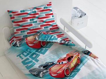 Комплект постельного белья Высокая скорость украсит интерьер комнаты ребенка за счет яркого рисунка по мотивам популярного мультфильма. Хлопковая ткань идеально подходит для повседневного использования, не деформируется после стирки, пропускает воздух и впитывает лишнюю влагу, заботясь о комфортном сне.<br>