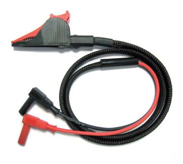 Соединительный провод проводов 1 м с зажимом типа "крокодил" и двумя угловыми бананами. Максимальное напряжение < 33 В AC < 70 В DC. Максимальная температура 50 °С