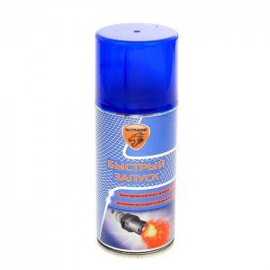 Аэрозоль "Быстрый запуск" Объем: 400мл. Предназначен для облегчения запуска бензиновых и дизельных двигателей любого литража и назначения в зимний период. Благодаря высокому содержанию эфира обеспечивает быстрый и надежный запуск двигателя даже при очень низких температурах или повышенной влажности. Значительно снижает пусковой износ двигателя, уменьшает риск критического разряда аккумуляторной батареи, продлевает ресурс стартера.. Способ применения:. Перед использованием энергично встряхнуть баллон в течение 1-2 мин. Для бензиновых двигателей: распылить в течение 5 сек. в воздухозаборник воздушного фильтра. Для дизельных двигателей: отключить свечи накаливания и нагреваемые фланцы, открыть дроссельную заслонку на полную, распылить средство в воздухозаборник воздушного фильтра и запустить двигатель. . Внимание!. Не применять на работающем двигателе. Не использовать средство при снятом воздушном фильтре во избежание обратного огня. None