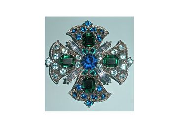 По-королевски роскошная брошь в форме мальтийского креста. сверкающие кристаллы богемского хрусталя, металл под серебро. размер 6х6 см. производство чехословакия, 1970-е годы. None Есть доставка.