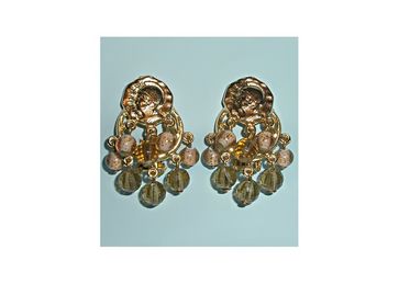 Роскошные клипсы в античном стиле от легендарного американского бренда бижутерии art. металл под золото, ювелирный акрил. размер 4х3 см. производство сша, 1970-е годы. фименная макировка art на обороте клипс.