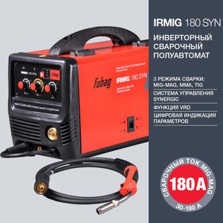 - FUBAG Сварочный инверторный полуавтомат IRMIG 180 SYN с горелкой FB 250 по выгодной цене 23 340 р. руб.;