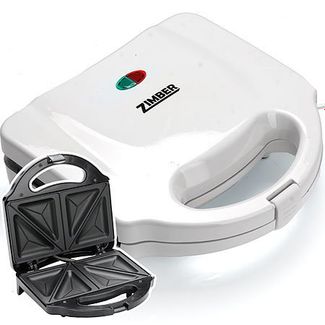 Сэндвичница ZM (х8). Материал: алюминий, бакелит. Цвет: белый. Антипригарное покрытие: есть. Мощность: 750 Вт. Количество порций: 4. Световой индикатор готовности. Размер упаковки: 24,5 х 9 х 23 см. Упаковка: коробка. Вес: 1,22 кг. Страна производитель: Китай. Для того, чтобы приготовить простой и вкусный завтрак быстро и легко, а также при необходимости оригинальной и несложной закуски, потребуются чрезвычайно полезная и не вызывающая проблем в освоении устройства — сэндвичница ZIMBER. Ей очень обрадуются занятые люди, у которых просто катастрофически не хватает времени на приготовление еды. Для них это идеальное решение. По принципу работы сэндвичница очень схожа с вафельницей, она состоит из нескольких антипригарных пластин, с ребристым в центре выступом. Принцип работы таков: пластины-тарелки во время готовки соединяются, нагреваются до высокой температуры и зажаривают до хрустящей корочки бутерброд. None