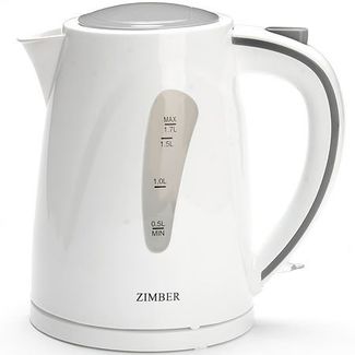 Чайник электрический ZM (х6). Материал: нержавеющая сталь, ПП. Цвет: белый, серый. Нагревательный элемент: скрытый. Объем: 1,7 л. Мощность: 1850-2200 Вт. Напряжение: 220-240 В, 50/60 Гц. Индикатор включения: есть. Защита от закипания без воды. Тройная защита от ожога паром. Автоматическое отключение: есть. Вращение 360 градусов: есть. Индикатор уровня воды: есть. Откидная крышка: есть. Размер упаковки: 22 х 17,4 х 22,8 см. Упаковка: коробка. Вес: 1,05 кг. Страна производитель: Китай.Электрический чайник ZIMBER сочетает в себе надежность, качество и приятный внешний вид. Выполненный из качественного термостойкого пластика (ПП), чайник оснащен скрытым нагревательным элементом из нержавеющей стали, что очень удобно, так как он более долговечен, чем спираль, и не подвержен образованию накипи. Благодаря этому электрочайнику Вам не нужно ждать, пока вода закипит на плите - чайник сделает это всего за несколько секунд, а стильный вид чайника украсит интерьер любой кухни! Беспроводной чайник имеет базу с антискользящим покрытием и вращается на 360 градусов. Чайник сохранит температуру воды на долгое время, что позволяет снизить расход электричества. Благодаря прозрачной шкале-индикатору можно следить за уровнем воды в чайнике. Для безопасного использования в чайнике предусмотрена тройная защита от ожога паром, функции автоматического отключения при отсутствии воды или открытии крышки, а также защита от закипания без воды. None