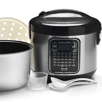 Мультиварка МВ (х6). Цвет: серебристый, черный. Материал корпуса: сталь (410), пластик. Внутренняя чаша: алюминиевый сплав . Покрытие чаши: антипригарное. Объем: 5 л. Мощность: 700 Вт. Напряжение: 220 В, 50 Гц. Режимов приготовления: 30. Отложенный старт: 24 часа. Сохранение блюда горячим: 12 часов. Защита от перегрева: есть. Тип управления: электронное. LCD-дисплей: есть. Размер упаковки: 29,5 х 29,5 х 28,2 см. Упаковка: коробка. Вес: 3,5 кг. Мультиварка объединяет в себе качества множества кухонных приборов. Она запекает, жарит, варит, сохраняя все полезные свойства продуктов. Пища сохраняет все витамины и минеральные вещества, а процесс приготовления превращается в приятное и интересное занятие. Все, что Вам необходимо сделать - это выбрать нужный режим, заложить в мультиварку необходимые продукты и включить ее, дальше мультиварка сделает все сама. Отличительной особенностью данной мультиварки являются 30 программ приготовления: рисовая крупа, выпечка, пароварка, плов, фритюр, варенье, запекание, паста, тушение, разогрев, рис, пицца, теплое молоко, каша, йогурт, мясо, барбекю, медленная варка, быстрая варка, пирог, разморозка, лапша, молочная каша, суп, гречка, овощи, овсянка, фасоль, жареный рис, а также ручной режим. Мультиварка имеет встроенный микропроцессор управления и большой дисплей LED. Утолщенная съемная кастрюля с антипригарным покрытием объемом 5 литров. Функция контроля NEURO FUSSY, обеспечивающая специальный процесс нагрева для приготовления вкусных блюд. Аксессуары в комплекте: лопатка, половник, мерный стакан, подставка-пароварка. Мультиварка станет Вашим надежным помощником в приготовлении разных блюд, она обеспечит Вас свободным временем, отличным настроением и замечательно приготовленными блюдами! None