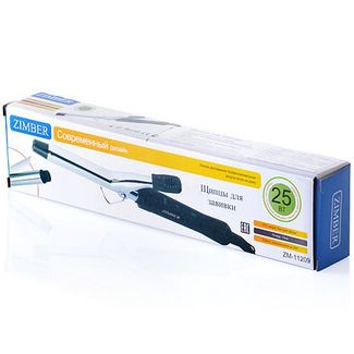 Щипцы д/завивки волос ZM (х50). Цвет: черный. Материал: пластик, металл. Мощность: 25 Вт. Напряжение: 110-240 В/ 50/60 Гц. 1 режим нагрева. Световой индикатор: есть. Вращение кабеля 360?. Размер упаковки: 32,5 х 7,5 х 4,5 см. Упаковка: коробка. Вес: 297 г. Страна производитель: Китай. Щипцы ZIMBER для завивки волос обеспечат салонный результат даже в домашних условиях. С помощью этого устройства ваши волосы всегда будут выглядеть идеально ухоженными и красивыми, причем сделать это не составит особого труда даже самостоятельно в домашних условиях. Удобные и стильные щипцы позволят завить пряди волос от корней до самых кончиков за считанные секунды. Модель проста и удобна в использовании, подходит для любых типов волос от средних до длинных. Электрощипцы оснащены защитой от перегрева. Нагревательным элементом служит компонент РТС, который при перегреве отключается автоматически. Для удобства пользования сетевой шнур вращается на шарнире на 360 градусов. Прибор следует использовать на сухих или слегка влажных волосах. Кроме того, с помощью таких щипцов вы в любое время можете придать завершающие штрихи вашей прическе. None