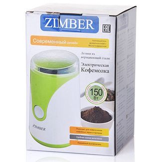 Электро-кофемолка 2 пр ZM (х12). Материал корпуса: пластик. Цвет: белый,салатовый. Материал корпуса: пластик. Материал ножей: нержавеющая сталь. Мощность: 150 Вт. Напряжение: 220-240 Вт, 50/60 Гц. Емкость контейнера для зерен: 50 г. Регулировка степени помола: нет. Защита от перегрева: есть. Размер упаковки: 12,5 х 12,5 х 19 см. Упаковка: коробка. Вес: 705 г. Страна производитель: Китай.Если Вы любите выпить по утрам чашку горячего, крепкого кофе, то эта компактная и функциональная кофемолка ZIMBER станет для Вас прекрасным приобретением. Данная модель снабжена ротационными ножами, которые быстро и качественно перемелют кофе. Причем за один раз может быть перемолото до 50 грамм зерен. Импульсный режим позволяет перемолоть даже очень твердые зерна за считанные секунды. Кофемолка оснащена функцией защиты от перегрева. Цветной пластиковый корпус кофемолки имеет современный дизайн и прекрасно впишется в интерьер любой кухни. Настоящие любители и ценители кофе обязательно почувствуют разницу между самостоятельно перемолотым свежим зерновым кофе и простым молотым, купленным в магазине. None