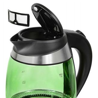 Максимальный объем - 1.8л Мощность - 2200Вт Нагревательный элемент - скрытый Цвет колбы - зеленый Материал корпуса - стекло/пластик Индикатор включения - есть Индикатор уровня воды - есть Фильтр от накипи - есть Автоматическое отключение - есть Температурные режимы - 1шт Подсветка воды - есть Подставка 360 градусов - есть LED подсветка - есть Доставка по всей РФ, Boxberry, DPD, Почта Возможен самовывоз. Есть доставка.