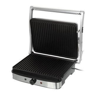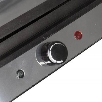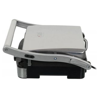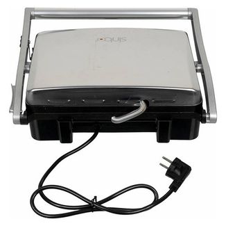 Внешний вид электрогриля SINBO SSM 2530 выполнен в минималистическом дизайне, корпус выполнен из металла и имеет эргономичные формы. Передняя нижняя часть корпуса также сделана из металла, а задняя нижняя часть - из жаропрочного пластика. Все металлические элементы выполнены из нержавеющей стали, что, собственно и обеспечивает немалый вес агрегата в 4,47 кг, но учитывая, что гриль не является мобильным прибором, такой вес считается плюсом, так как говорит об использовании качественных материалов, а не быстро портящихся металлических сплавов. Для безопасности работы с прибором разработчики разместили на ручке запирающую защелку, также, она имеет теплоизоляционное покрытие, которое предотвращает нагрев во время работы прибора. Благодаря предустановленным нагревательным элементам общей мощностью в 2000 Вт, электрогриль нагревается быстро, что экономит расход электроэнергии. Для регулировки температуры и уменьшения мощности в передней нижней части корпуса расположился поворотный переключатель на 5 режимов, а справа и слева от него световые индикаторы, сигнализирующие о включении прибора и готовности к использованию. Лоток для сбора сока и жира находится в задней части корпуса. Его легко доставать с помощью небольшой выступающей ручки и разрешено мыть в посудомоечной машине. В модели электрогриля SINBO SSM 2530 питание осуществляется от сети переменного тока 220 Вт с помощью шнура, который закреплен в задней части корпуса. Пластины съемные и имеют тефлоновое антипригарное покрытие, соответствующее технологии COOLTOUCH. Размер рабочей поверхности составляет 23х30 см. Крышка с пластинами раскрывается полностью до 180 градусов. В том случае, если толщина продукта не позволяет закрыть крышку электрогриля, в модели предусмотрена регулировка положения пластин, которая позволяет приподнять их на определенную высоту и правильно расположить продукт Технические характеристики: