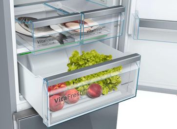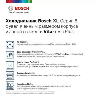 Холодильник с нижней морозильной камерой с общим объёмом 466 л и зоной свежести VitaFresh: дольше сохраняет свежесть продуктов - благодаря оптимальным условиям хранения- пониженой температуре в отделениях для рыбы и мяса и регулируемой влажности в отделении для овощей и фруктов. Холодильник XL: теперь все легко поместится Отделения VitaFresh помогают дольше сохранить свежими ваши продукты. Холодильники c PerfectFit: могут быть установлены на кухне вплотную к мебели и стенам, без зазоров. Светодиодная подсветка LED: ярко и равномерно освещение пространства холодильника. Система полок VarioZone: легкое изменение положения стеклянных полок и ящиков в морозильном отделении. Общий объём: 466 л. Холодильное отделение: 338 л. Зона свежести VitaFresh Plus 25 л. Морозильное отделение: 128 л. Дверной упор правый, перенавешиваемый. Размеры прибора (ВхШхГ): 203 x 70 x 67 см. None Возможен самовывоз.