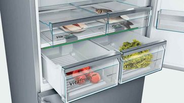 Serie 6, Full NoFrost. Габариты: 186x86x81. Общий полезный объем: 619. Холодильник: 479. Морозильник: 140. Цвет: Нержавеющая сталь с легкой очисткой. Нулевые зоны VitaFresh plus. Зона свежести VitaFresh plus. Класс энергоэффективности A++. Уровень шума 40дБ. 10 лет гарантии на компрессор. None Возможен самовывоз.